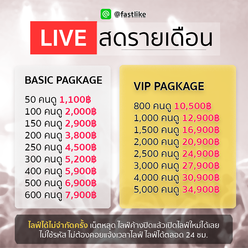 Fastlike-TH บริการเพิ่มยอดวิวขณะไลฟ์สด หรือที่เรียกกันว่า เพิ่มคนดูไลฟ์สด ให้ไลฟ์หรือธุรกิจของท่านมีความน่าเชื่อถือ และได้รับความสนใจ ดึงดูดคนให้เข้ามาดูได้เพิ่มขึ้น มีโอกาสขจายได้เพิ่มขึ้น!